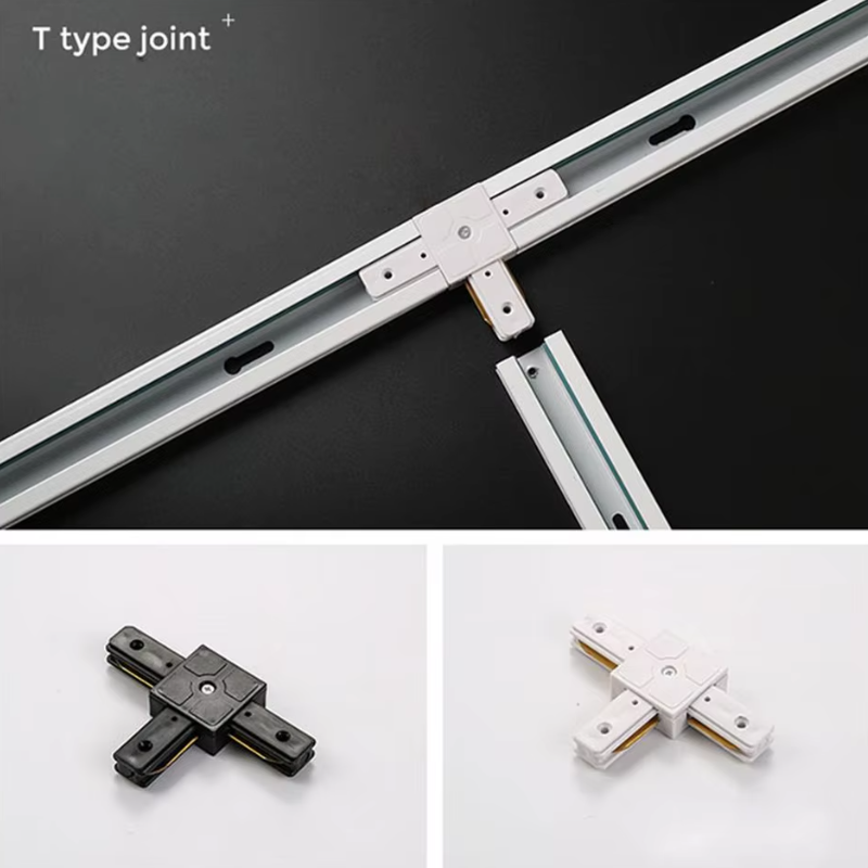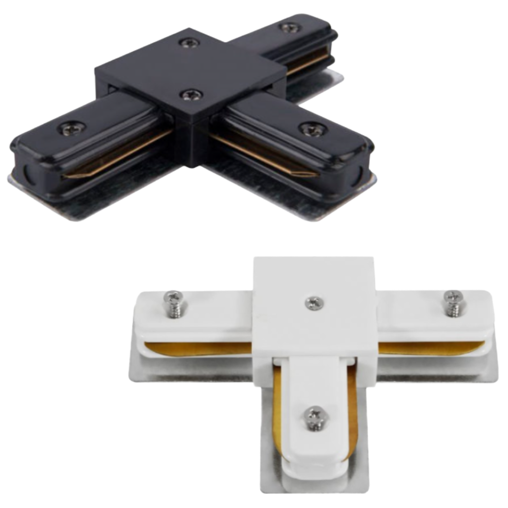 Conector T Riel Monofásico Protek, útil para conectar y extender tramos de riel logrando luminarias de mayor dimensión.