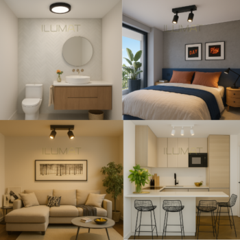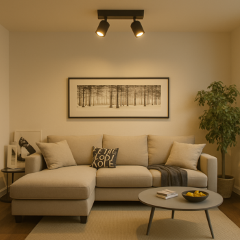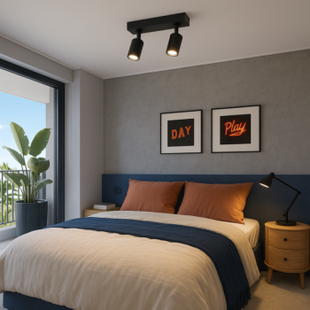 - 2 und: Aplique Magro 2 x gu10, sobrepuesto, con ampolletas luz calida 3000K, en carcasa color blanco o negro (Sala y dormitorio)